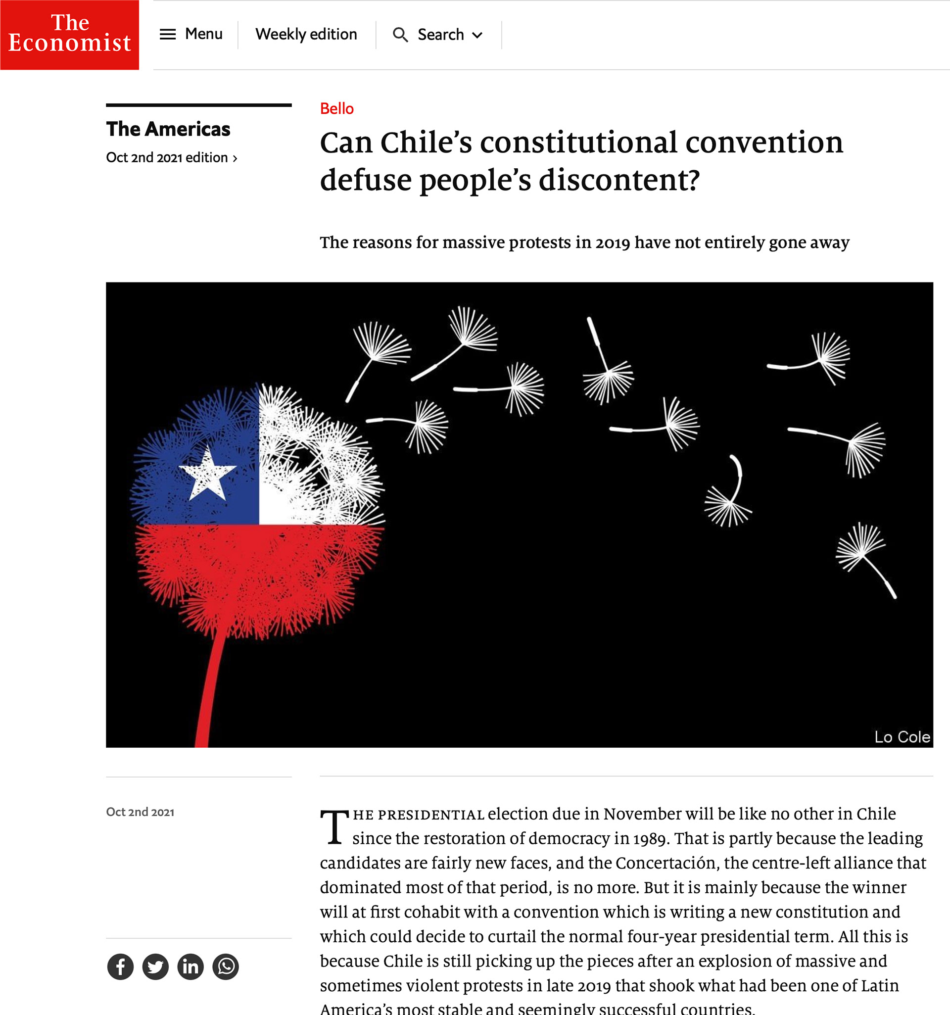 Illustration for The Economist, Bello column: Can Chile's constitutional convention defuse people's discontent?
