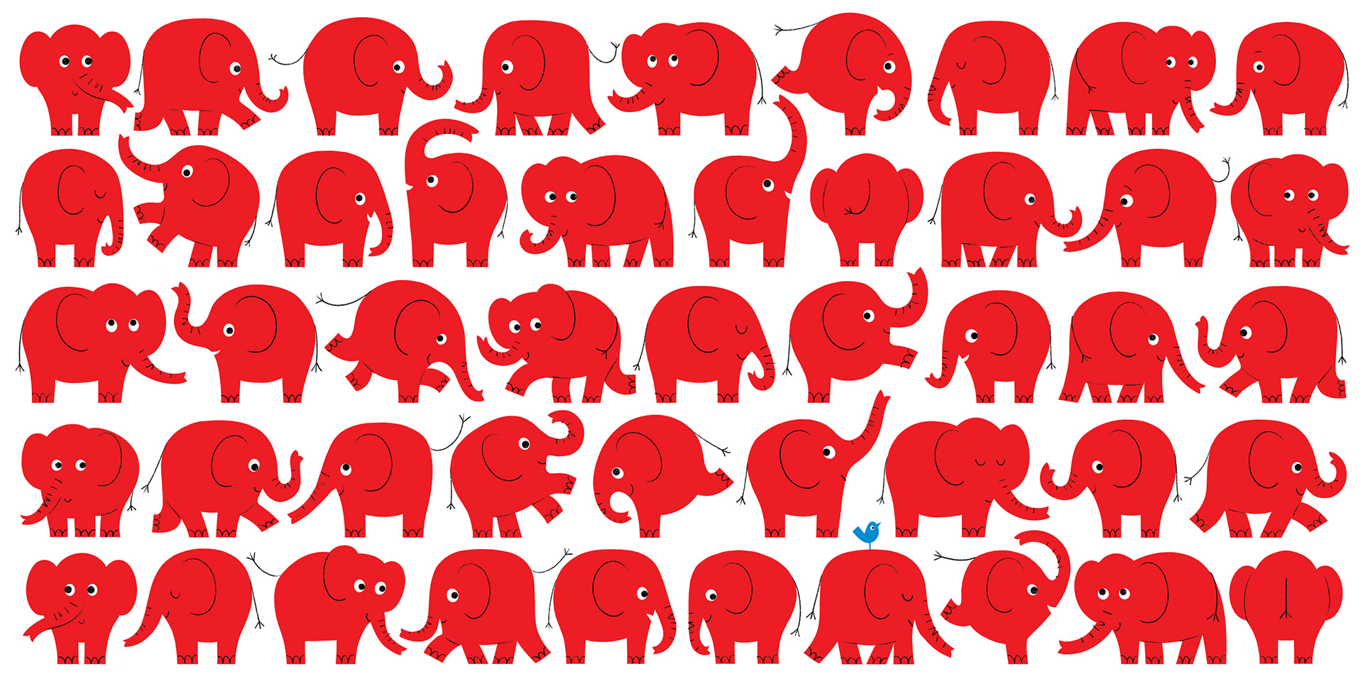 Being a bright red elephant, Doris is very easy to spot.