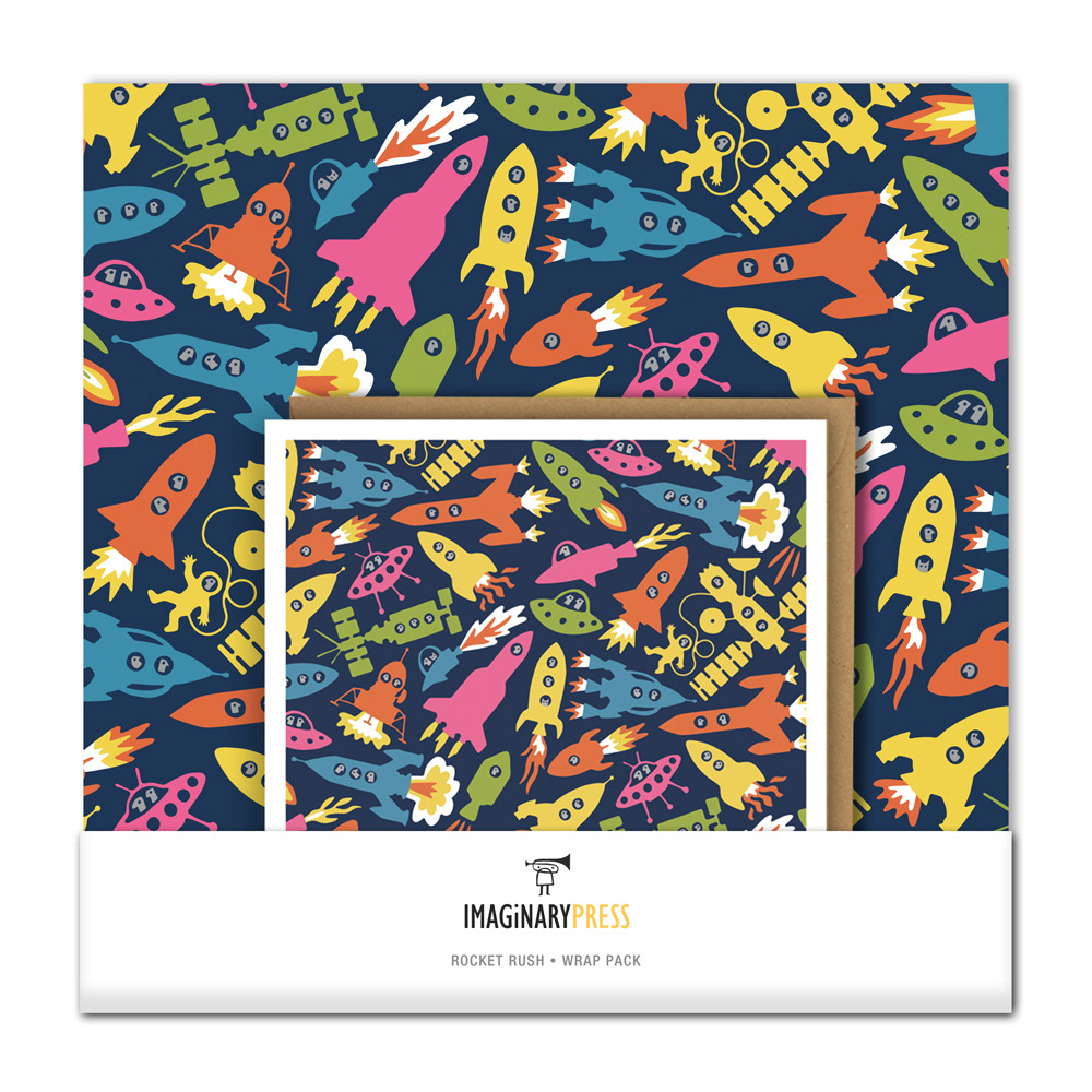 Rocket Rush - repeat design for Imaginary Press - Cards, wrapping paer and gift tags.