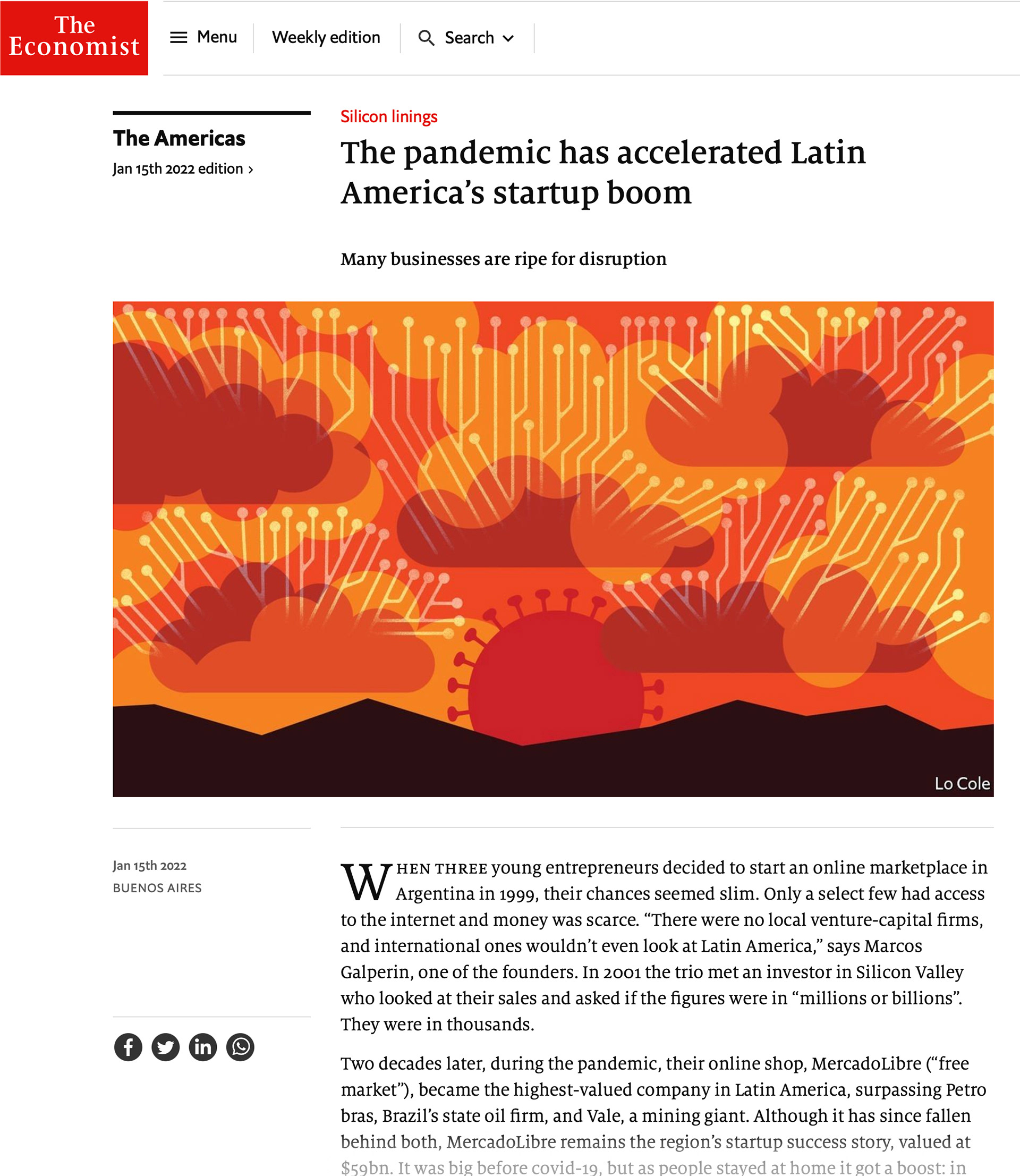 Illustration for The Economist - Silicon linings The pandemic has accelerated Latin America’s startup boom