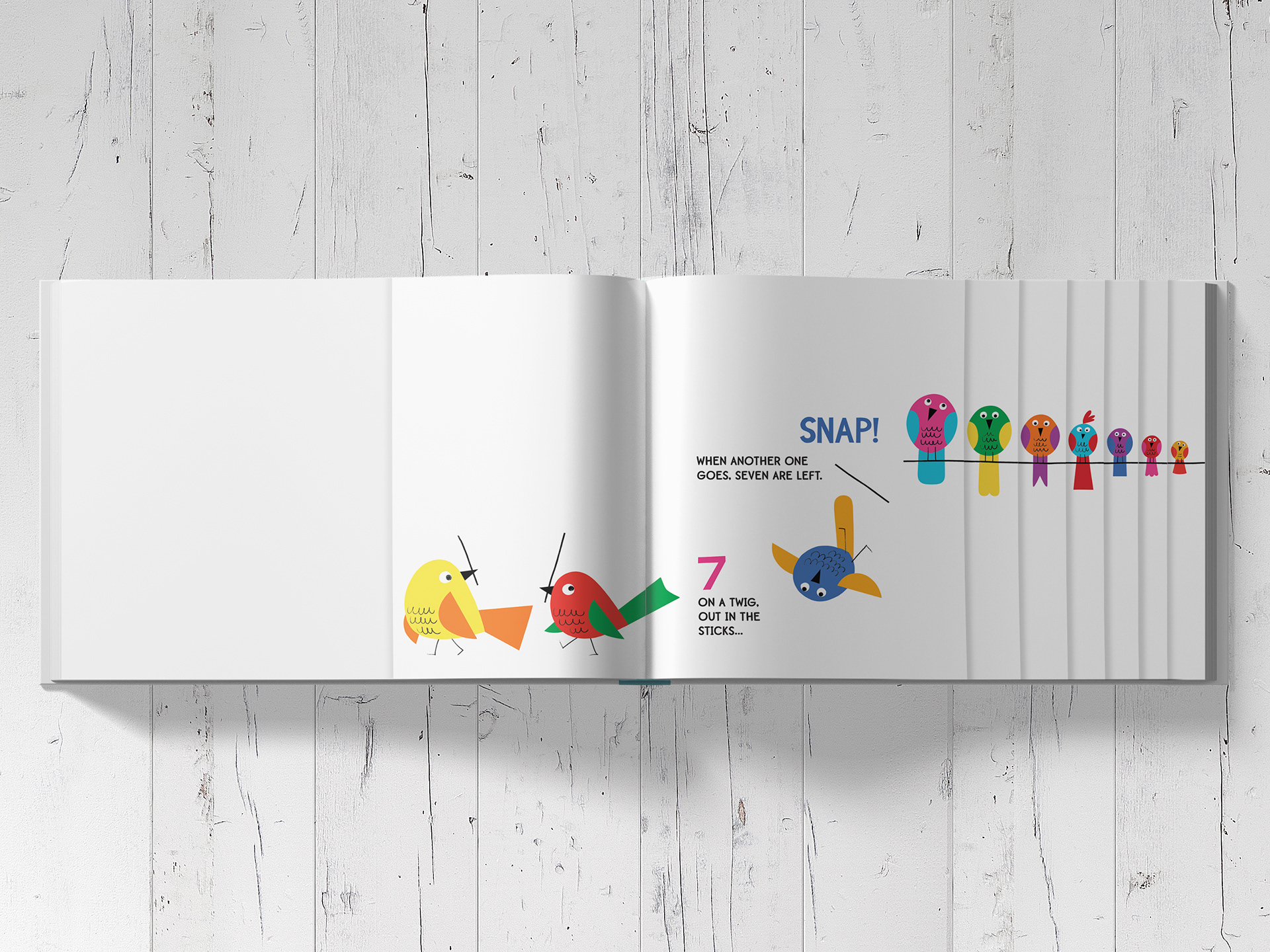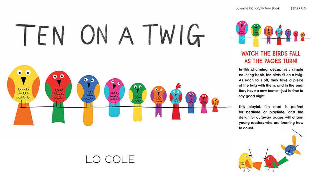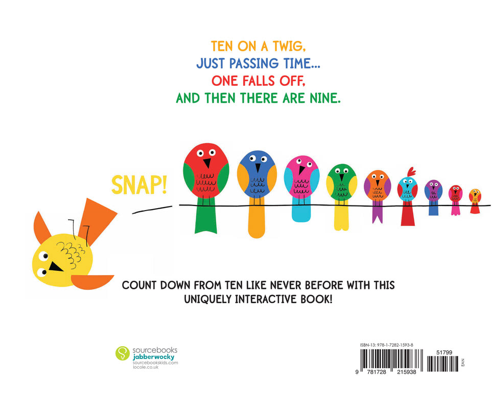 In this charming and deceptively simple counting book, ten birds sit on a twig. As each falls off, they take a piece of the twig with them, and in the end, they have a new home, just in time to say goodnight.