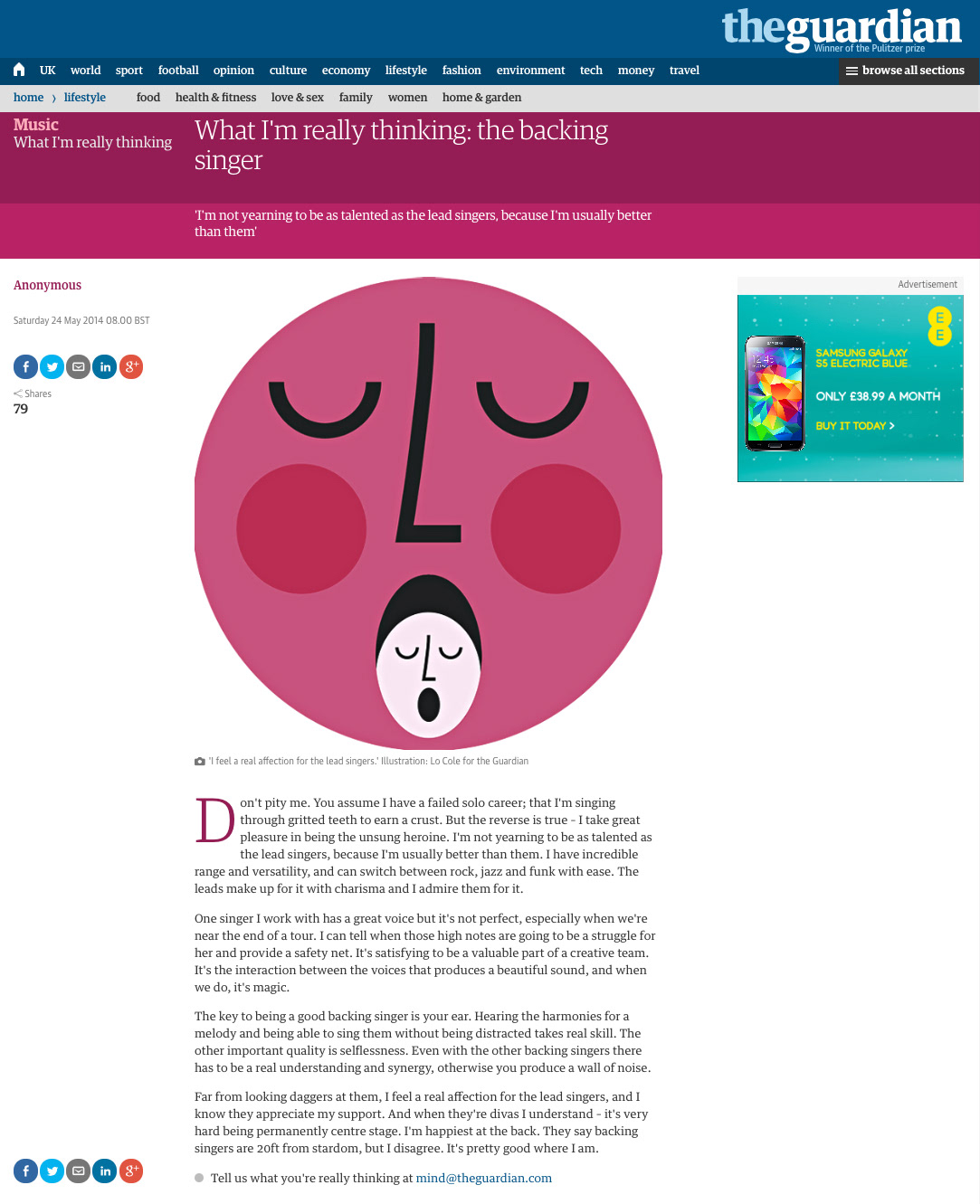 Illustration for The Guardian Weekend Magazine, series: 'What I'm Really Thinking ...'